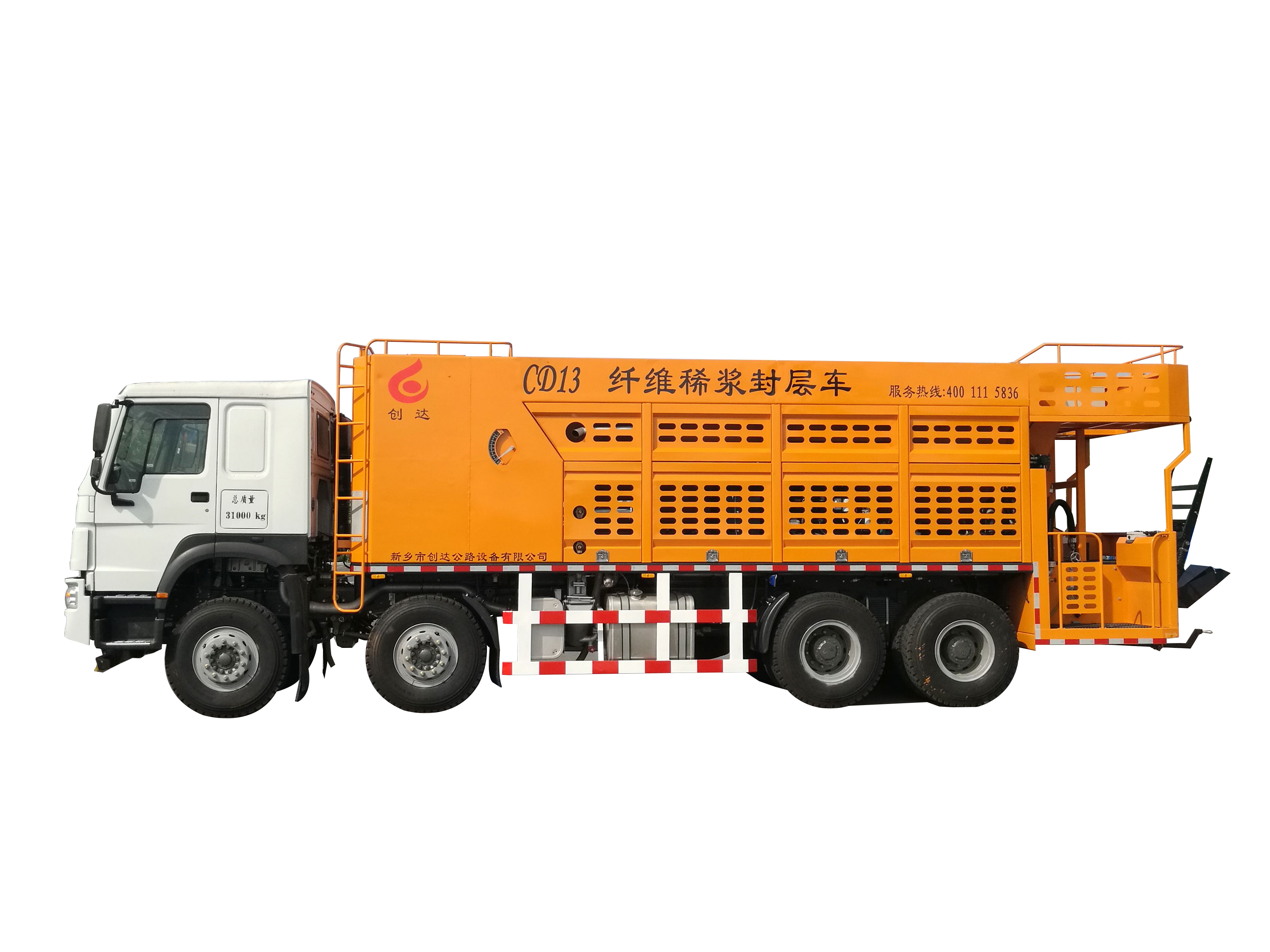 我公司設(shè)計(jì)生產(chǎn)的CDXF13AX型纖維稀漿封層車(chē)采用機(jī)、電、液、氣一體化操作控制,具有物料按比例摻配精準(zhǔn)、纖維切割分散均勻一致、混合料拌和強(qiáng)勁、漿料布料均勻無(wú)離析、攤鋪平整一致、低速控制穩(wěn)定等優(yōu)點(diǎn),是目前纖維稀漿封層與微表處施工的理想機(jī)械。